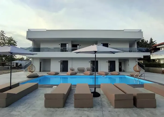 Featuring Wi-Fi throughout the property, V Luxury Suites apartment is situated in Pefkochori, 100 km from Thessaloniki airport. The venue includes a kitchen along with a mini-bar, coffee and tea makers, and a seating area in the rooms.