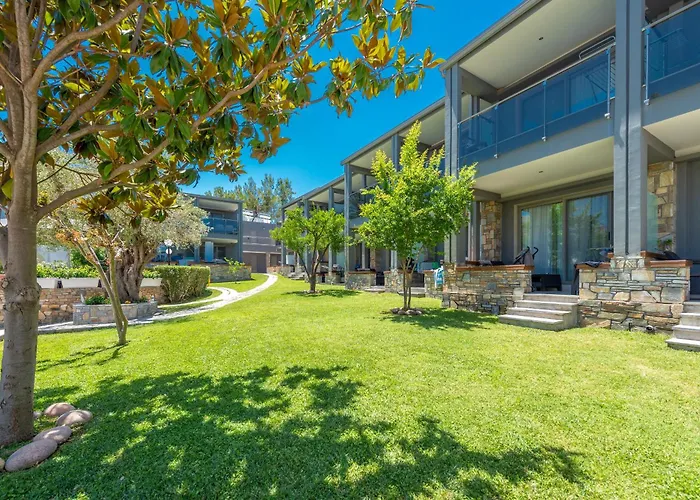 Hanioti Beach liegt etwa 25 Gehminuten von dem 5-Sterne-Hotel entfernt. Kassandra Halbinsel ist unter anderem in 10 Autominuten zu erreichen. Die Unterkunft liegt in 50 Meter Entfernung zu dem goldenen Strand. Polichrono Beach ist in 2 km Entfernung von der Unterkunft. Das Laguna Resort liegt in 95 km Entfernung vom Flughafen Thessaloniki.