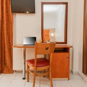Die Unterkunft in Peraía umfasst 28 Zimmer und stellt einen Flachbildfernseher mit Satellitenkanälen, einen privaten Safe und eine Klimaanlage zur Verfügung. In den Badezimmern werden eine getrennte Toilette und eine Dusche bereitgestellt.