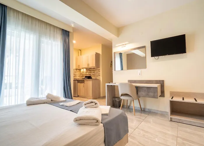 Das Hotel ist innerhalb von 30 Fußminuten vom Stadtzentrum aus zu erreichen. Der Strand ist 600 Meter entfernt. In 100 km Entfernung von der Unterkunft befindet sich der Flughafen Thessaloniki.